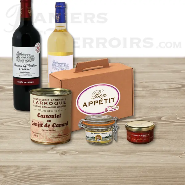 Livraison de cadeaux gourmands personnalisés > Paniers gourmands > Paniers par Événement > Paniers de Pâques > Coffret dégustation : Cassoulet et foie gras du Sud-Ouest