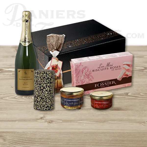 Livraison de cadeaux gourmands personnalisés > Paniers gourmands > Paniers par Événement > Paniers Saint Valentin > Coffret de Douceur Blanc de Noirs